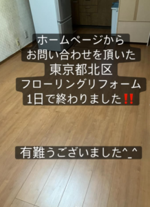昨日は、ホームページをご覧頂きご縁が出来ました東京都北区のお客様からのご依頼のフローリングリフォームでした😊