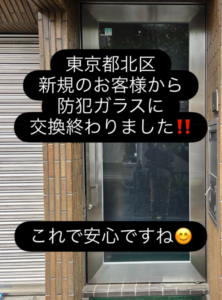 ホームページからお問い合わせを頂きました東京都北区の玄関ドア防犯ガラスリフォームが終わりました😊