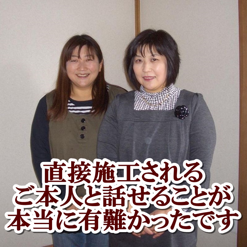 直接施工されるご本人と話すことが今回初めて出来、その良さを目の当たりにすることとなりました。 真意も伝わりやすく本当に有難かったです。 離れた場所に住んでおりますのでお任せっきりになってしまい申し訳けなかったのですが、 快く作業して下さり、安心して過ごすことができました。 見違える家をブログで拝見しながら実感していくことも出来ました。 お礼をたくさん申し上げても足りないくらいです。 本当に有難うございました。これからも頑張ってください。 |