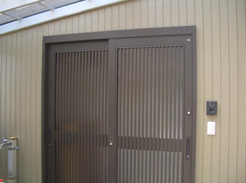 間口が2730CMのシャッターの所に、 間口が1800CMと勝手口ドアを取り付けました。 |