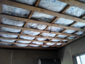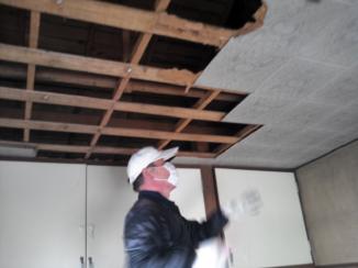 | 既存の天井を剥がしていきます。 | 断熱材が入っていなかったので 断熱材を入れました。 |