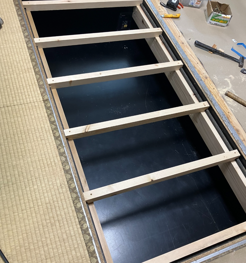 掘りごたつの床を工事し、畳もお客様ご要望の琉球畳をご案内しました。